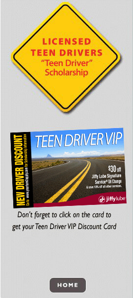 The Jiffy Lube "Teen Driver" Scholarship Now it’s your turn! Get our attention! Tell us about your goals, drive, ambition … your future! Simply write your 500-word typed essay about what drives you now. Click here to apply directly online or Print Application Form )pdf format) Mail (postmarked) Deadline: March 2, 2026!